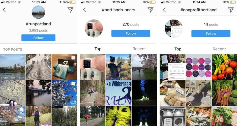 Just like Twitter, you can use hashtags on Instagram to connect with users who might be interested in contributing to your campaign. For instance, if you’re sponsoring a charity 5k in Portland, you could search a hashtag like #runportland to connect with other users who have used that hashtag and might be interested in your event.